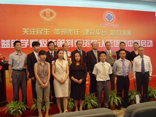 国际注册税务筹划师培训中国启动新闻发布会于2011年6月16日在北京人民大会堂重庆厅隆重举行,国际认证协会轮值主席Matt Holmes先生、对外贸易部原副部长、中国国际战略学会高级顾问佟志广先生、国家副总督学郭福昌先生、中国高等教育学会副会长、中国教育报刊社原社长党委书记赵书生先生、中国人才研究院副院长王通讯先生、内蒙古自治区革命老区发展中心主任青格勒图先生、中国国际科技促进会信息部彭剑彪主任、国际认证协会中国区首席代表沙江先生、安永资深税务合伙人陈明宇先生、中国区税务筹划师考务中心特聘专家代表、国福企业俱乐部、中国区税务筹划师考务中心各地负责人、税务师事务所和企业代表出席了本次新闻发布会,媒体界人士及嘉宾近200人参加了新闻发布会。