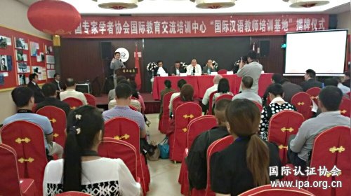 2014年9月18日,中国专家学者协会国际教育交流培训中心与(IPA)国际认证协会(简称IPA)及战略合作伙伴——北京京师环宇国际教育集团共建的“国际注册汉语教师培训基地”在京成立,并举行了揭牌仪式和新闻发布会。