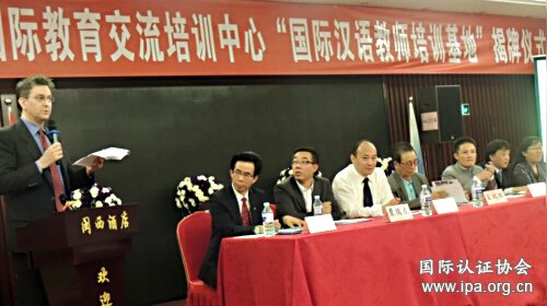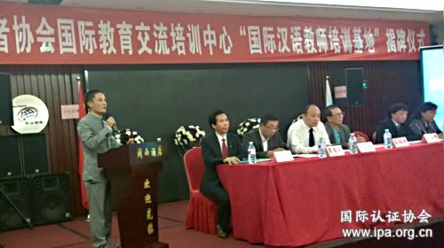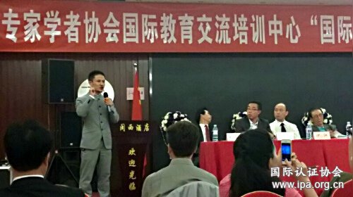 国际认证协会(IPA)中方代表沙江简单介绍了国际认证协会,他说,国际认证协会(IPA)目前在全国有近千家合作机构,培养了一批又一批国际化专业人才,通过国际认证协会IPA获得了相应的国际职业资格认证,从而快速提升了自己的个人品牌和价值。“国际注册汉语教师证书”是国际认证协会(IPA)根据国际上对汉语教师的极大需求的市场状况而推出的资格认证。国际认证协会(IPA)推出的“国际注册汉语教师职业证书”是被国际100多个国家认可的,具有权威性。该证书由国家人社部和国际认证协会(IPA)联合颁发,是世界范围内唯一被认可的汉语教师上岗证书。
